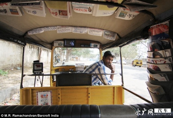 這位來自印度的名叫Annadurai的司機朋友便為他的嘟嘟車增添了不少科技玩意兒,不僅在后排為客人準(zhǔn)備了各式各樣的報紙雜志,更提供了免費Wi-Fi服務(wù)、車用電視、平板電腦、各種款式的手機充電插頭等配備,為客人提供了相當(dāng)便利的乘車環(huán)境。