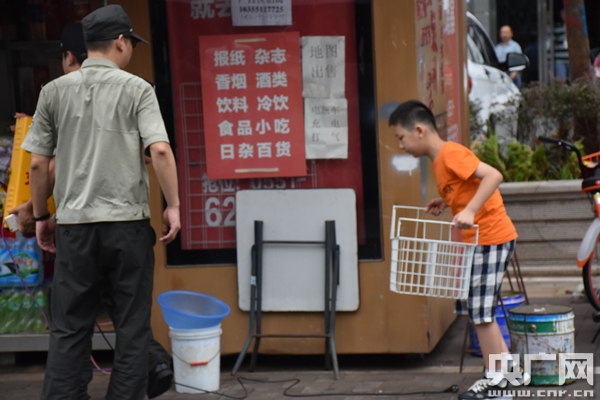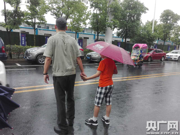 央廣網(wǎng)合肥8月9日消息 “爸爸,為什么書(shū)報(bào)亭不能賣(mài)吃的?”“爸爸,為什么他們都把車停人行道上?”8月8日上午,雖然下起了大雨,但是蜀山區(qū)城管局執(zhí)法大隊(duì)二中隊(duì)副中隊(duì)長(zhǎng)蔣建帶著9歲的兒子蔣博軒開(kāi)始了一天的工作。父子倆一問(wèn)一答,現(xiàn)實(shí)版“爸爸說(shuō)”在我們身邊展現(xiàn)。(宗雷 王翔翔)