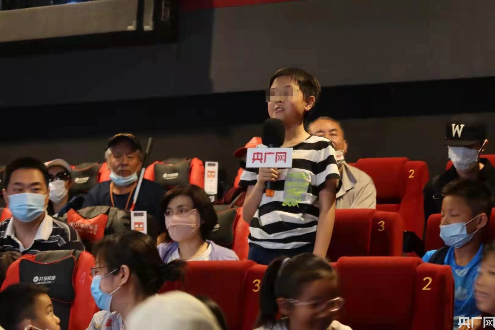 “這是我第一次體驗蒙眼行走和觀影,印象非常深刻,也非常重要。盲人朋友看不到畫面只能聽聲音,非常不容易。我們應(yīng)該多關(guān)注他們,在生活中盡力幫助他們。如果以后我能成為一個科學(xué)家,我希望能讓盲人朋友重新看到這個世界,看到彩色的世界。”李國昊同學(xué)發(fā)言。