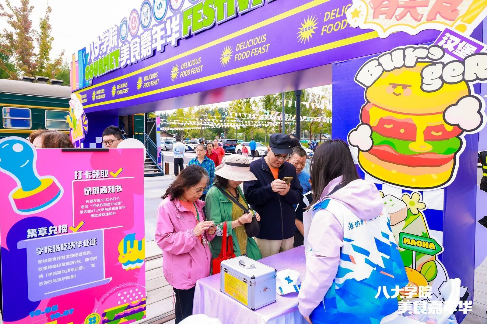 10月5日至7日,“八大學(xué)院美食嘉年華”在京張鐵路遺址公園舉辦。本次活動(dòng)由北京市海淀區(qū)花園路街道聯(lián)合學(xué)院路街道主辦;顒(dòng)期間,公園被打造成一片美食與文化的海洋。3天時(shí)間里,來(lái)自9所高校的高校食堂組團(tuán)“走出校門”,讓市民一站式解鎖“舌尖上的學(xué)科盛宴”。