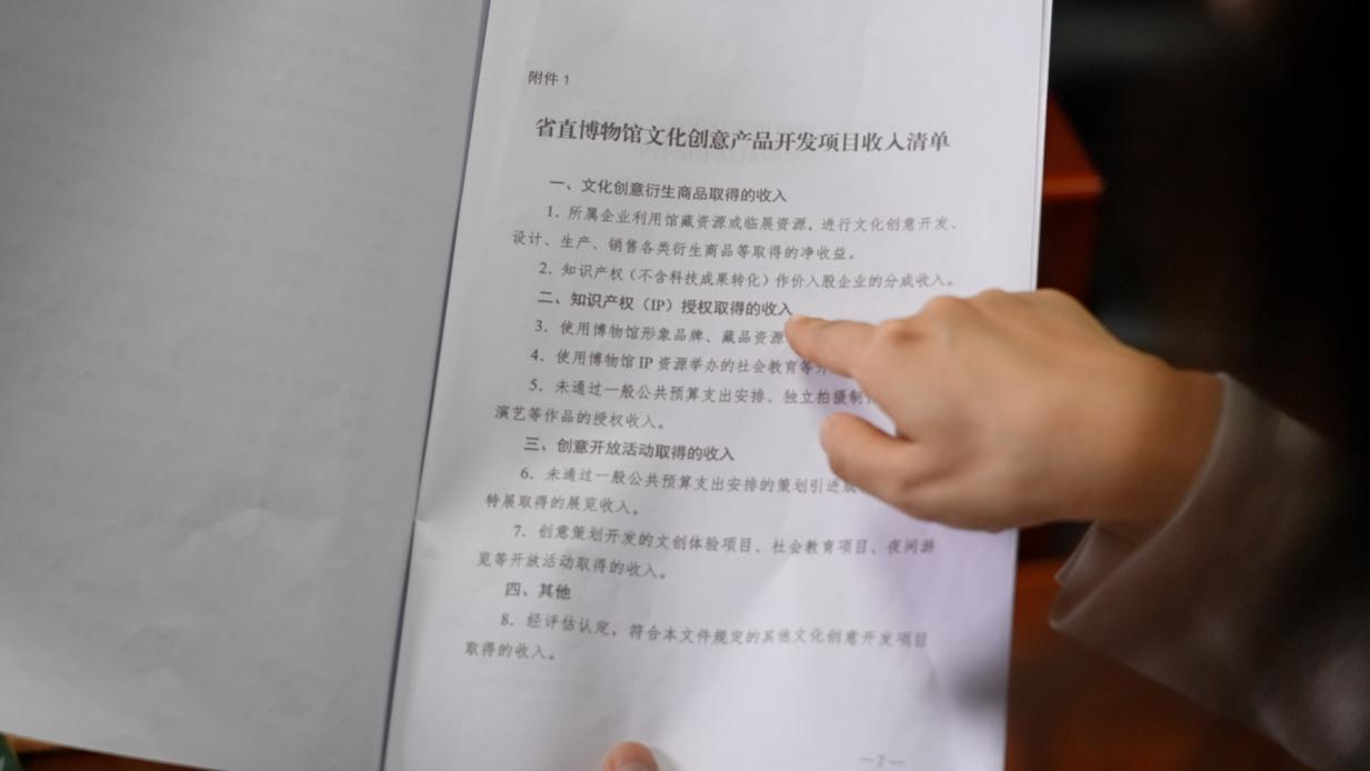 江蘇省直博物館文創(chuàng)產(chǎn)品開發(fā)項目收入清單(記者黃成 攝)