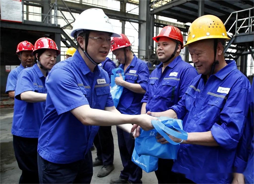 在磨浮車(chē)間,吳亞和陳彬?qū)⒁环莘荨扒鍥觥倍Y包送到員工手中,感謝大家戰(zhàn)高溫,守崗位,為公司上半年生產(chǎn)經(jīng)營(yíng)做出的突出貢獻(xiàn),同時(shí)叮囑大家注意休息、勞逸結(jié)合。