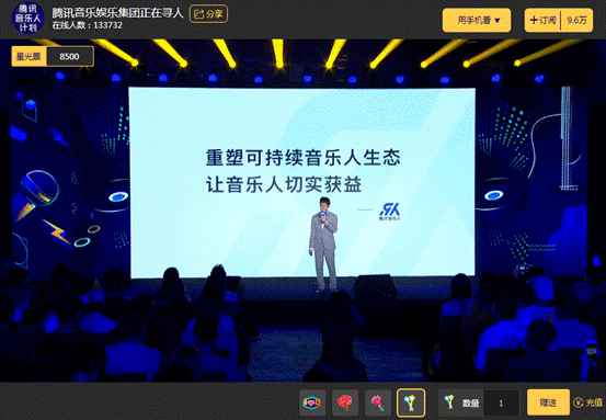解決困境并非一朝一夕的口頭承諾。彭迦信指出,騰訊音樂娛樂集團(tuán)在盜版橫行的年代就已經(jīng)開始堅(jiān)持正版化,并已積累十多年的精耕細(xì)作經(jīng)驗(yàn)。集團(tuán)旗下酷狗音樂、QQ音樂、酷我音樂、酷狗直播、5Sing、全民K歌六大音樂平臺(tái)上已經(jīng)駐留了相當(dāng)多的音樂人,為平臺(tái)上的音樂人發(fā)布超過10萬張專輯,但彭迦信表示“還遠(yuǎn)遠(yuǎn)不夠”。之前六大平臺(tái)雖然已積累出一定成績,但長期彼此獨(dú)立,并沒有充分發(fā)揮平臺(tái)優(yōu)勢。“希望通過打通六大平臺(tái)的資源,最大化地解決音樂人的痛點(diǎn),為音樂人帶來更多實(shí)際化的幫助。”彭迦信還表示,騰訊音樂娛樂集團(tuán)將為音樂人提供作品發(fā)行、宣傳推廣、數(shù)據(jù)管理、演出支持、作品收益、版權(quán)管理、權(quán)利保護(hù)甚至教育培訓(xùn)服務(wù),一站式解決音樂人的痛點(diǎn)需求,并且“未來三年內(nèi)不計(jì)成本支持原創(chuàng)音樂人”,為原創(chuàng)音樂人提供5億的收入,讓平臺(tái)以及平臺(tái)上的粉絲成為好音樂的伯樂。