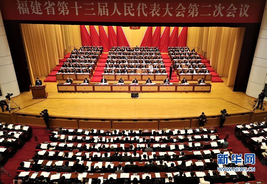 福建省十三屆人大二次會(huì)議在福建會(huì)堂開幕。新華網(wǎng) 劉豐 攝