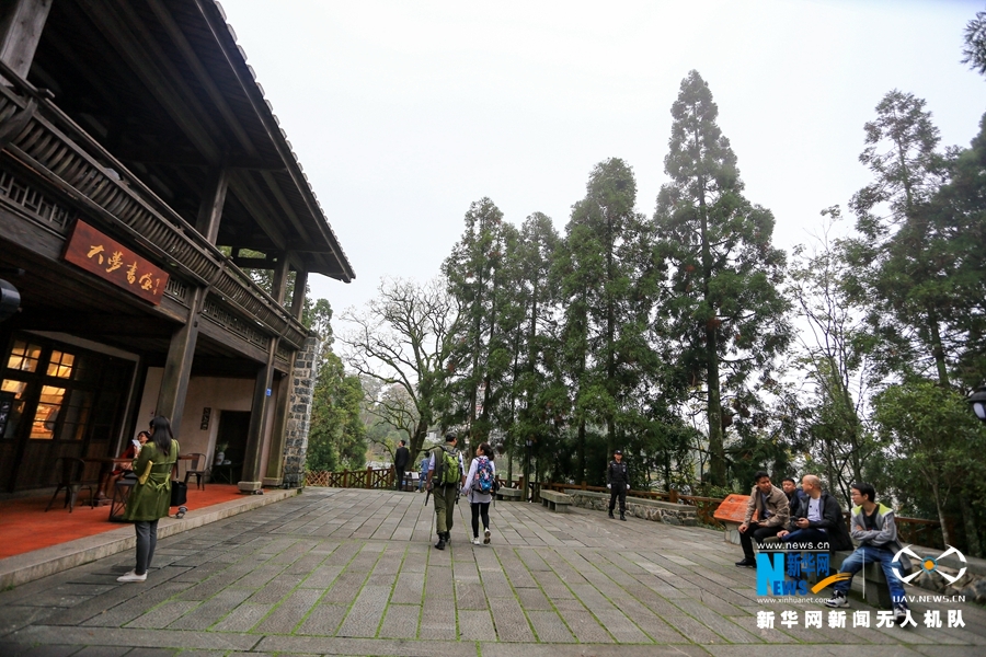 游客在鼓嶺大夢書屋前休憩(11月6日攝)。新華網(wǎng) 肖和勇 攝