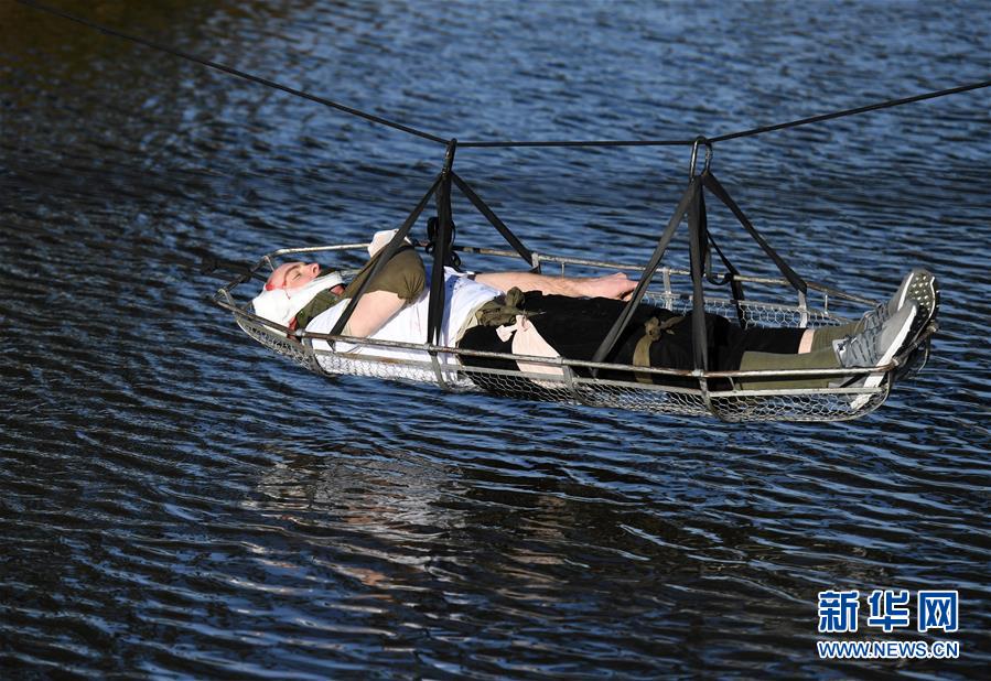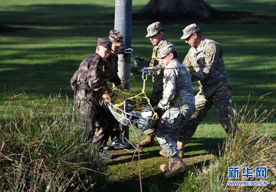11月18日,在美國俄勒岡州錫賽德的國民警衛(wèi)隊拉里葉軍營,中美兩軍參演人員共同演練單繩橋救援。中美兩軍人道主義救援減災(zāi)聯(lián)合實(shí)兵演練當(dāng)日進(jìn)入第三天。此次聯(lián)合演練中美兩軍共派出200余人參加。新華社記者殷博古攝 -
