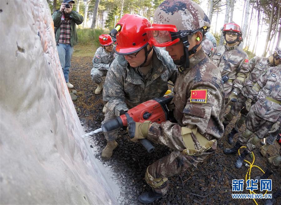 11月18日,在美國俄勒岡州錫賽德的國民警衛(wèi)隊拉里葉軍營,中方參演人員觀摩美方參演人員演練狹小空間救援。中美兩軍人道主義救援減災(zāi)聯(lián)合實(shí)兵演練當(dāng)日進(jìn)入第三天。此次聯(lián)合演練中美兩軍共派出200余人參加。新華社記者殷博古攝 -