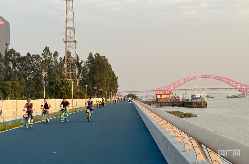 市民在蕉門河市民廣場(chǎng)漫步騎行迎全運(yùn)(央廣網(wǎng)發(fā) 南沙區(qū)委宣傳部供圖)