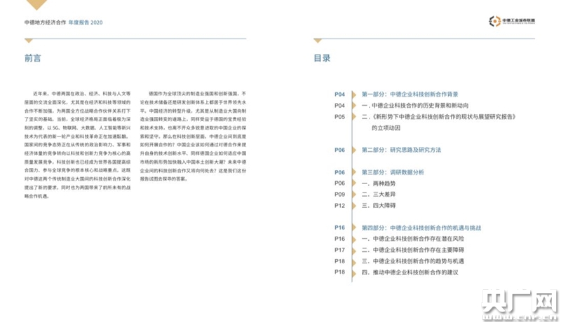 《新形勢(shì)下中德企業(yè)科技創(chuàng)新合作的現(xiàn)狀與展望》目錄(央廣網(wǎng)發(fā) 圖片來自《年度報(bào)告》)