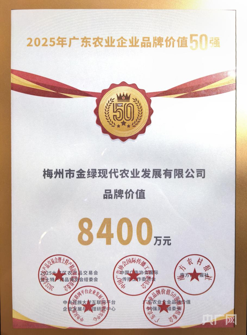 央廣網(wǎng)廣州12月14日消息(記者徐鋇兒)12月12日,在大灣區(qū)農(nóng)產(chǎn)品交易會(huì)暨土特產(chǎn)精品博覽會(huì)上,廣東農(nóng)業(yè)企業(yè)品牌價(jià)值50強(qiáng)頒獎(jiǎng)儀式順利舉行。興寧鴿產(chǎn)業(yè)龍頭企業(yè)梅州市金綠現(xiàn)代農(nóng)業(yè)發(fā)展有限公司憑借8400萬元品牌價(jià)值成功上榜,位列第42名,較2024年首次入圍時(shí)提升7名,實(shí)現(xiàn)跨越式突破。