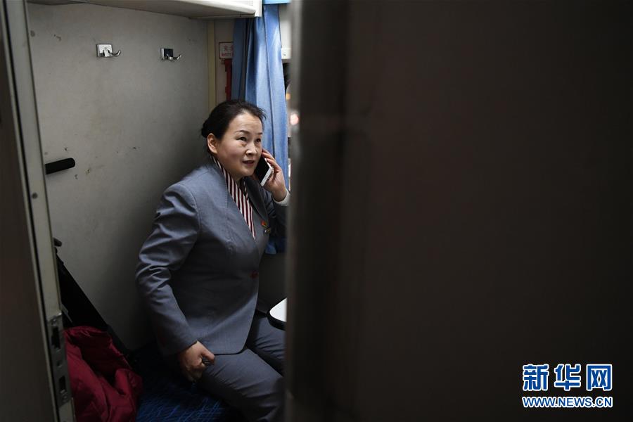 任亞娟在列車上給丈夫李全忠打電話(2月9日攝)。利用工作間隙,兩人會(huì)彼此打個(gè)電話,詢問工作生活的情況,籌劃團(tuán)聚時(shí)的安排。 “全:我走車了,今年過年又見不著了,家里的衛(wèi)生已經(jīng)打掃,愛你!”這是任亞娟給丈夫李全忠的留言,她知道,等到丈夫下班回家看到這條留言的時(shí)候,她已經(jīng)在蘭州到成都的列車上了。同在中國鐵路蘭州局集團(tuán)有限公司蘭州客運(yùn)段工作的任亞娟和丈夫李全忠都是車隊(duì)隊(duì)長,負(fù)責(zé)不同的線路,兩人從1995年結(jié)婚以來,因?yàn)楣ぷ鞯脑,聚少離多。兩人將對(duì)彼此的牽掛和思念寫在紙條上,放在回家一進(jìn)門就能看見的位置,這一寫就是20多年。“快過年了,別忘了給老人買年貨!薄白罱禍,我給你買了毛衣,記得穿上!薄把狙荆ㄋ麄兣畠豪钭课档男∶┮呀(jīng)送回老家,你安心工作不要惦記……”相比現(xiàn)在的短信、微信等“一點(diǎn)即到”的方式,任亞娟和李全忠更習(xí)慣看著對(duì)方在留言本上的一筆一劃,感受著這個(gè)家的溫暖。如今,他們的女兒丫丫也成了一名列車員。今年,一家三口都承擔(dān)著春運(yùn)任務(wù),將在不同的列車上度過春節(jié)。臘月二十三這一天,一家三口一起度過了“小年夜”,算是提前過個(gè)“團(tuán)圓年”。第二天一大早,任亞娟和女兒丫丫就分別奔赴崗位。而李全忠也在當(dāng)晚出乘前,在家里留了言,寫著“娟:我給你包了你最愛吃的韭黃餡餃子,放在冰箱里,等你回來一起吃! 新華社記者 陳斌 攝