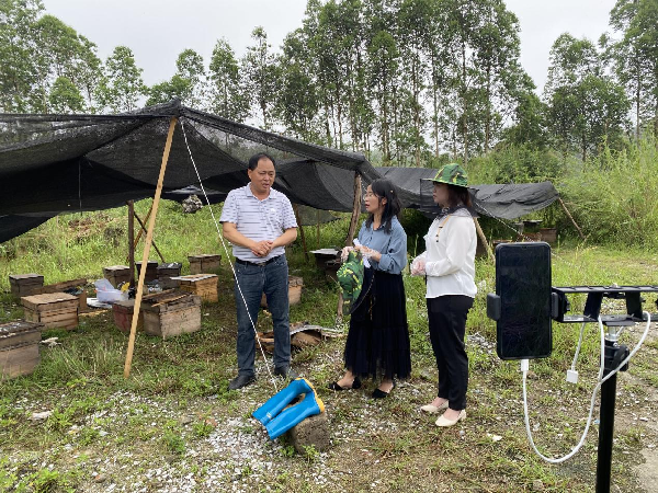 央廣網(wǎng)南寧5月24日消息(記者黃月芬 通訊員班曉敏)近日,由廣西南寧市上林縣經(jīng)濟貿(mào)易和信息化局、上林縣農(nóng)業(yè)農(nóng)村局指導(dǎo),南寧市益農(nóng)信息社運營中心、上林縣樂村淘網(wǎng)絡(luò)科技有限公司和廣西經(jīng)貿(mào)職業(yè)技術(shù)學院電子商務(wù)教學團隊,在上林縣澄泰鄉(xiāng)象山社區(qū)居民委員會的象山社區(qū)養(yǎng)蜂合作社示范基地里,進行了一場精心策劃的電商直播“帶貨”活動,上林縣養(yǎng)蜂能手變身“網(wǎng)絡(luò)主播”,利用電商直播平臺為深山里的蜂蜜插上“翅膀”。