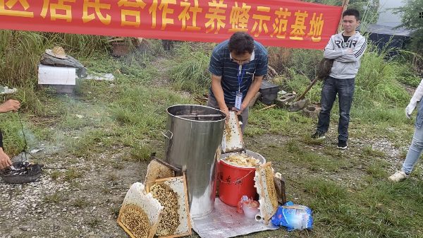 上林縣養(yǎng)蜂能手介紹蜂蜜知識 (央廣網(wǎng)發(fā) 班曉敏攝)