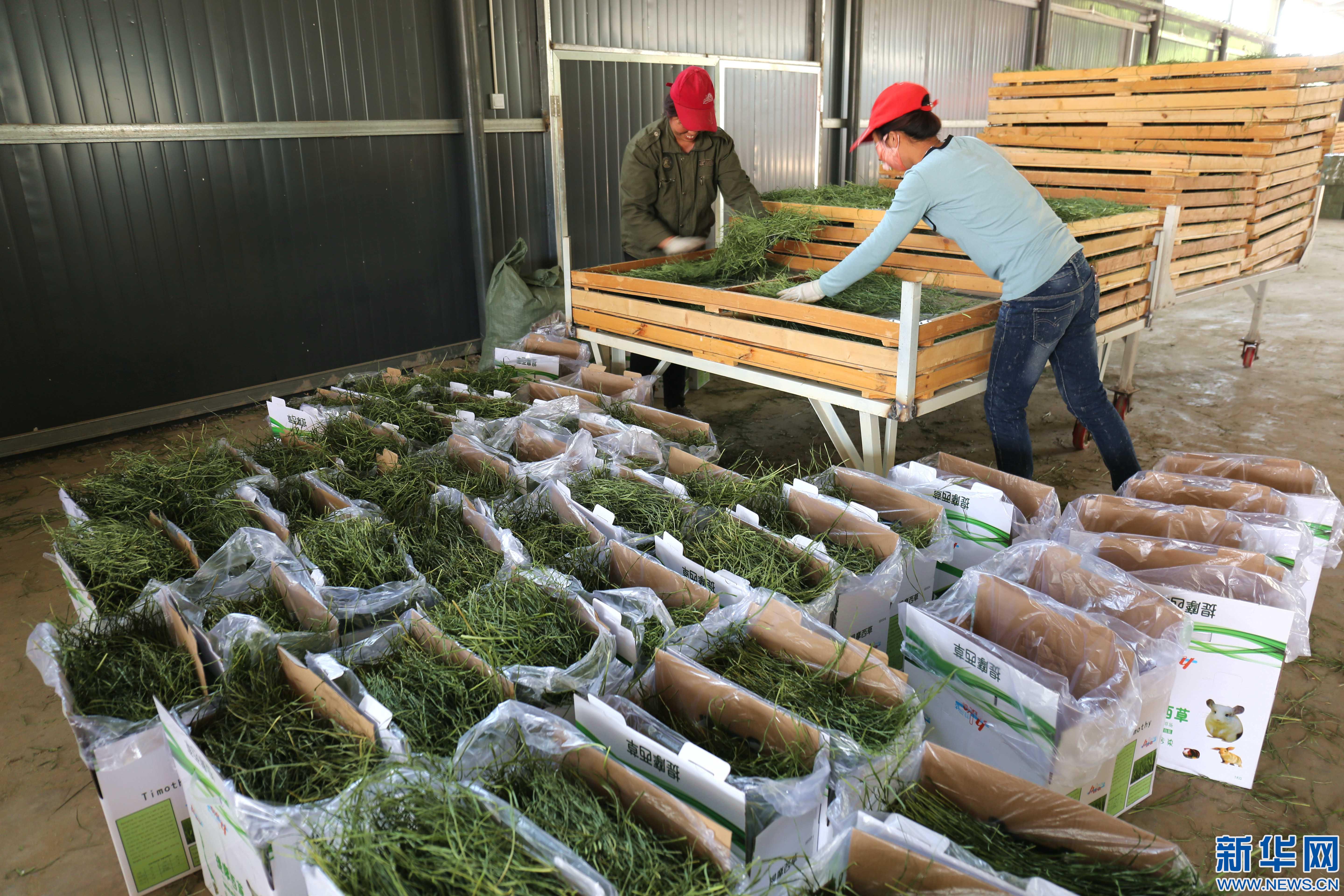 5月10日,河北省平泉縣道虎溝鄉(xiāng)一寵物草加工企業(yè)員工在包裝烘干后的寵物草。(新華社發(fā) 劉環(huán)宇攝) 近年來,河北省承德市平泉縣道虎溝鄉(xiāng)引導當?shù)剞r民調整產業(yè)結構,因地制宜發(fā)展寵物草種植加工產業(yè),引進苜蓿草、小麥草、大麥草等7個品種的寵物草,產品遠銷北京、天津、上海等地,帶動當?shù)剞r民在家門口就業(yè)致富,拓寬精準脫貧新路徑。 -