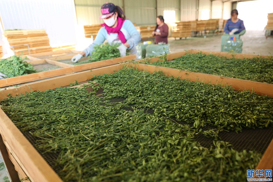 5月10日,河北省平泉縣道虎溝鄉(xiāng)一寵物草加工企業(yè)員工在加工寵物草。(新華社發(fā) 劉環(huán)宇攝) -