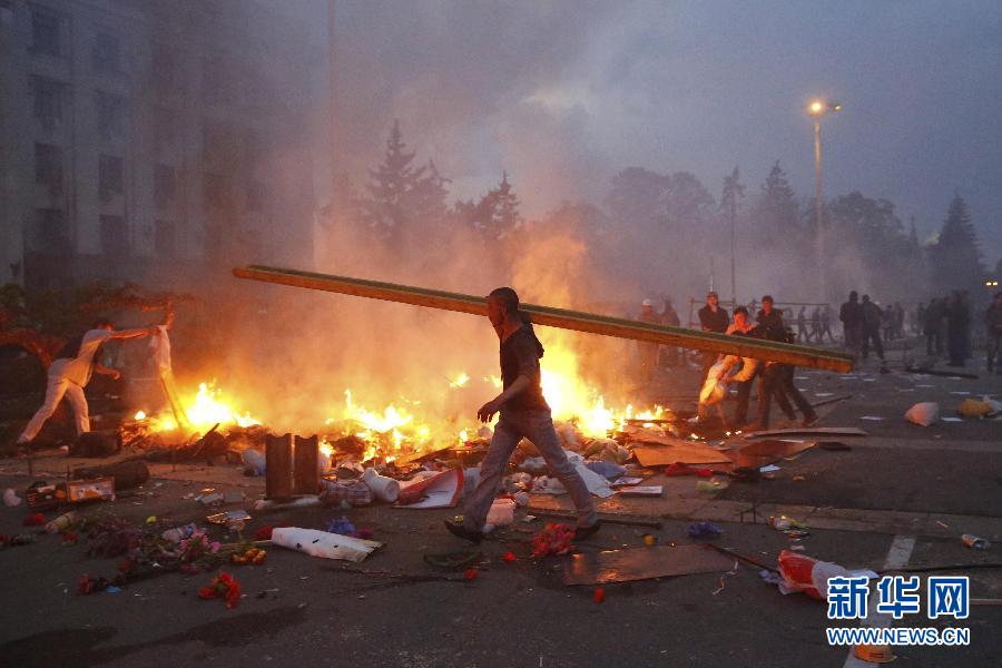 央廣網(wǎng)河南分網(wǎng)消息 據(jù)新華網(wǎng)報道:繼烏克蘭軍警5月2日凌晨對烏東部城市斯拉維揚(yáng)斯克發(fā)起攻勢后,烏南部黑海沿岸城市敖德薩同日發(fā)生親政府與反政府兩派民眾沖突,造成嚴(yán)重人員傷亡。烏克蘭東部局勢持續(xù)緊張。一名歐盟成員國駐布魯塞爾的高級外交官對新華社記者表示,他認(rèn)為,隨著烏克蘭軍方2日(向反政府武裝人員)發(fā)起攻擊,烏克蘭內(nèi)戰(zhàn)已經(jīng)打響。5月2日是烏克蘭危機(jī)發(fā)生質(zhì)變的節(jié)點(diǎn)。俄羅斯聯(lián)邦委員會國際事務(wù)委員會副主席克里莫夫認(rèn)為,在敖德薩和烏克蘭東南部發(fā)生的流血事件可以視為烏克蘭內(nèi)戰(zhàn)的序幕。圖為5月2日,在烏克蘭南部城市敖德薩,工會大樓附近的一個臨時帳篷被燒毀。烏克蘭南部黑海沿岸城市敖德薩2日發(fā)生親政府與反政府兩派民眾沖突,導(dǎo)致43人死亡。新華社發(fā)
