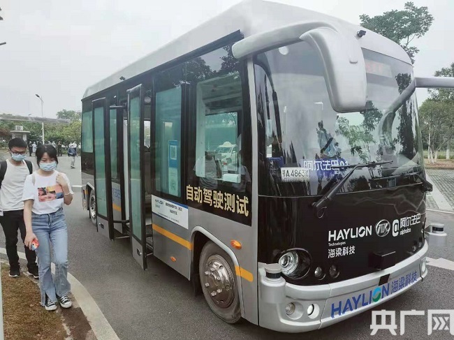 圖為:無人駕駛公交車 央廣網(wǎng) 發(fā) 記者張迪 攝
