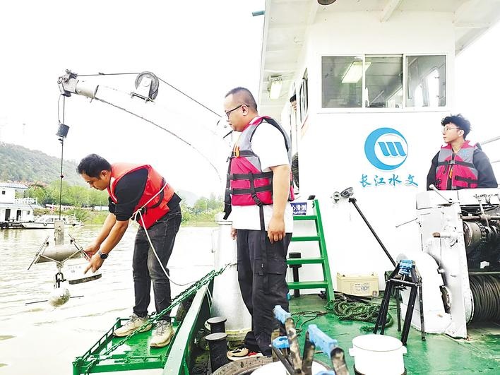漢江局黃家港水文站懸移質輸沙率測驗。 (湖北日報通訊員 楊華欣 攝)
