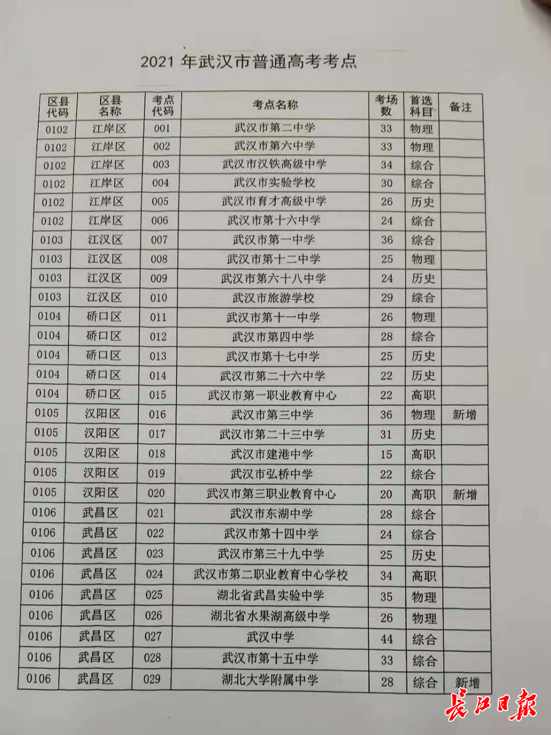 官方發(fā)布武漢市2021年高考考點。記者劉嘉 攝