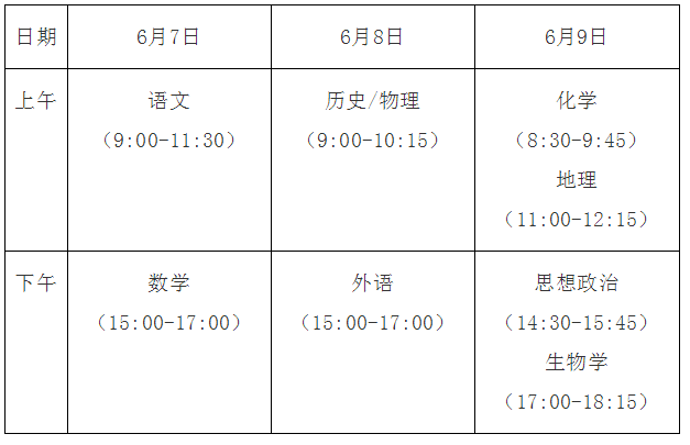 注:部分新高考地區(qū)考試時間為3天,具體時間安排以當(dāng)?shù)乜荚囋簽闇?zhǔn)