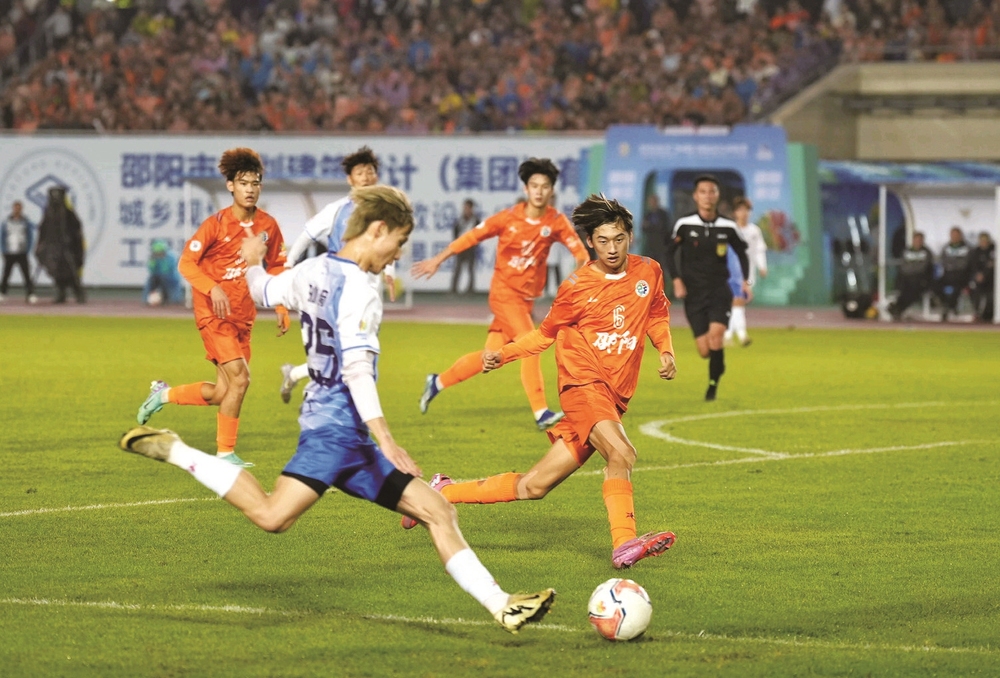 11月2日晚,“湘超”比賽第八輪對決中,邵陽隊在邵陽市體育中心主場迎戰(zhàn)婁底隊。