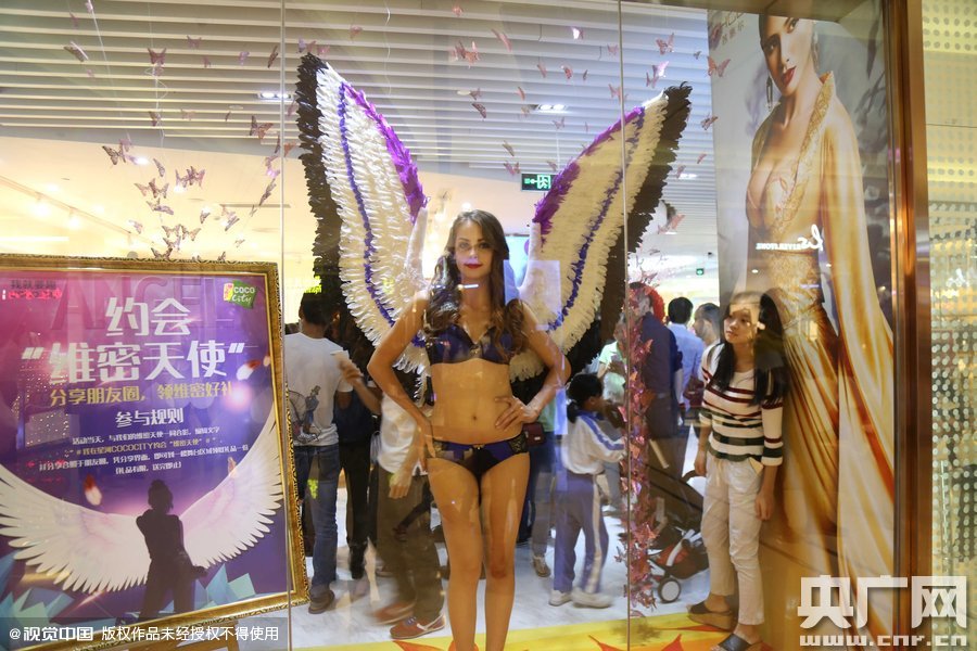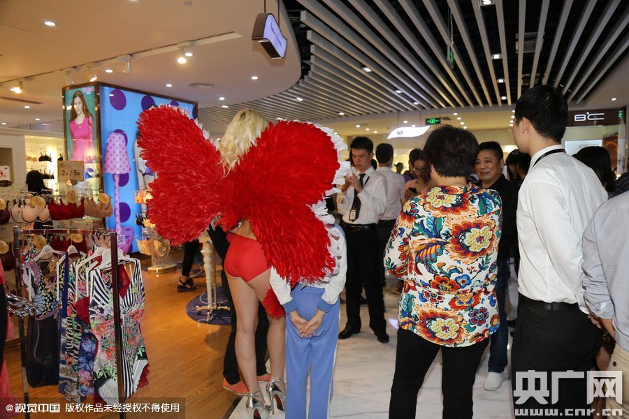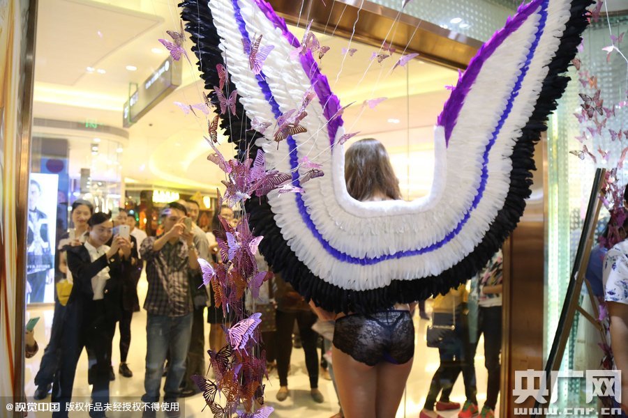 2015年11月11日訊,廣東省深圳市,11月11日晚,一場內(nèi)衣企業(yè)做的山寨"維秘"秀現(xiàn)身深圳,吸引大批男女老少圍觀,清一色的洋模身著內(nèi)衣搭配不同款式的翅膀在T臺(tái)走秀,相當(dāng)吸睛,而后更是引來不少人求合影!