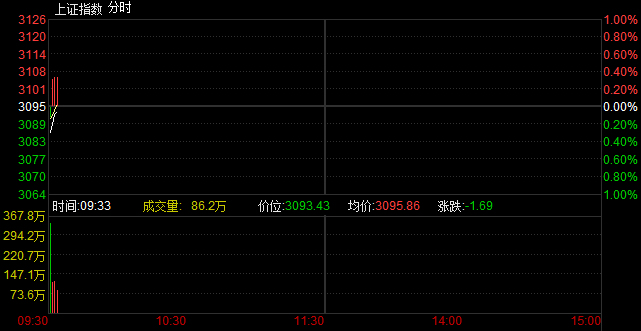 開盤:兩市漲跌不一 滬指跌0.15%報3090點