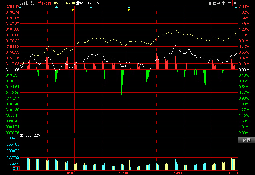 截至收盤(pán),滬指漲16.11點(diǎn),報(bào)3157.70點(diǎn),漲幅0.51%,成交2108.63億元;深成指大漲129.01點(diǎn),報(bào)11265.63點(diǎn),漲幅1.16%;創(chuàng)業(yè)板漲25.17點(diǎn),報(bào)1772.85點(diǎn),漲幅1.44%,成交208.02億元。