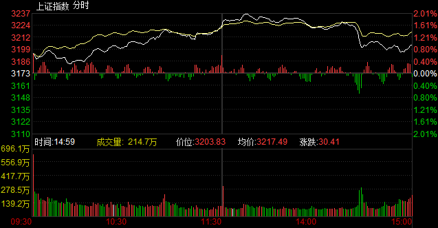 央廣網(wǎng)財經(jīng)北京2月13日消息 據(jù)經(jīng)濟(jì)之聲《交易實況》報道,兩市開盤小幅高開,一路高走,午后沖高回落,截至收盤,滬指報3203.83點,上漲30.41點,漲幅0.96%,成交2930億元;深成指報11443.0點,上漲140.32點,漲幅1.24%,成交2708億元;創(chuàng)業(yè)板指報1825.49點,上漲36.68點,漲幅2.05%,成交596.9億元。