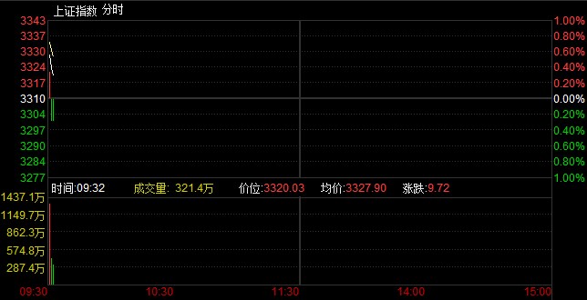 央廣網財經北京3月2日消息 據經濟之聲《交易實況》報道,兩市開盤雙雙高開,滬指報3332.72點,上漲22.42點,漲幅0.68%,成交55.42億元;深成指報11869.9點,上漲112.27點,漲幅0.95%,成交45.40億元;創(chuàng)業(yè)板指報1944.11點,上漲16.06點,漲幅0.83%,成交11.25億元。