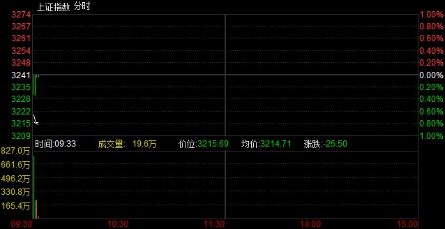 央廣網(wǎng)財(cái)經(jīng)北京3月9日消息 據(jù)經(jīng)濟(jì)之聲《交易實(shí)況》報(bào)道,兩市開盤雙雙低開,滬指報(bào)3224.31點(diǎn),下跌16.87點(diǎn),跌幅0.52%,成交33.84億元;深成指報(bào)11280.0點(diǎn),下跌112.38點(diǎn),跌幅0.99%,成交23.77億元;創(chuàng)業(yè)板指報(bào)1941.42點(diǎn),下跌9.98點(diǎn),跌幅0.51%,成交8.150億元。