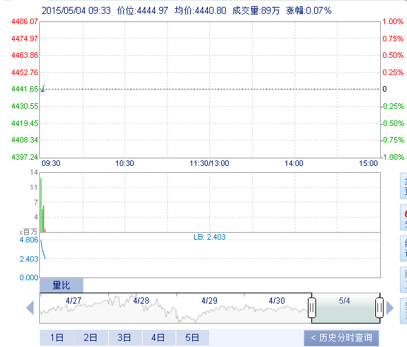開(kāi)盤(pán):滬指微跌0.01%報(bào)4441點(diǎn) 京津冀板塊開(kāi)盤(pán)漲逾3%