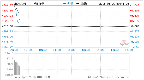 央廣網(wǎng)北京5月26日消息 據(jù)經(jīng)濟(jì)之聲《交易實(shí)況》報(bào)道,周二開盤,兩市大幅高開,滬指報(bào)4854.85點(diǎn),漲41.05點(diǎn),漲幅0.85%,深成指報(bào)16456.23點(diǎn),漲105.17點(diǎn),漲0.64幅%,創(chuàng)業(yè)板報(bào)3471.80點(diǎn),漲3.88點(diǎn),漲幅0.11%。
