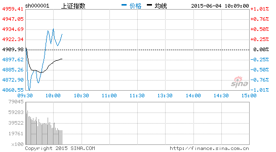 央廣網(wǎng)北京6月4日消息 據(jù)經(jīng)濟之聲《交易實況》報道,周四早盤,兩市雙雙高開,滬指報4912.94點,漲2.97點,漲幅0.06%;深成指報17579.36點,漲40.85點,漲幅0.23%;創(chuàng)業(yè)板報3991.80點,漲9.55點,漲幅0.24%。