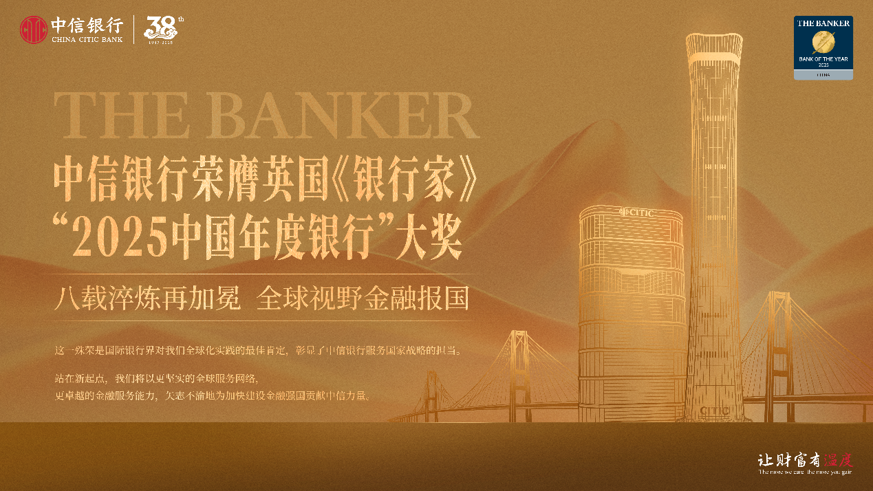 近日,一張漂洋過海且含金量十足的榜單“造訪”了中國(guó)銀行業(yè)。在這個(gè)被視為“銀行業(yè)奧斯卡”的2025年度評(píng)選中,中信銀行站上C位,榮膺“2025年中國(guó)年度銀行”。該份榜單是國(guó)際專業(yè)財(cái)經(jīng)媒體英國(guó)《銀行家》(The Banker)對(duì)于中信銀行近年來在服務(wù)實(shí)體經(jīng)濟(jì)領(lǐng)域一系列創(chuàng)新實(shí)踐的認(rèn)同與褒獎(jiǎng),在歷屆榜單中,工商銀行、農(nóng)業(yè)銀行等國(guó)有大行和幾家頭部股份制銀行也曾斬獲該年度銀行獎(jiǎng)項(xiàng)。