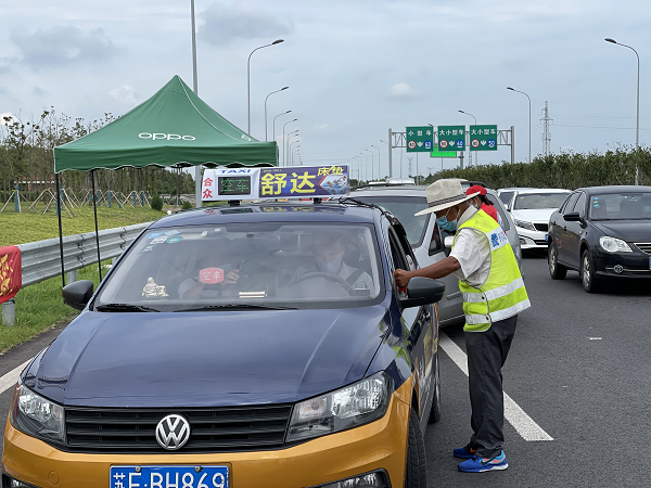 “您好,請(qǐng)出示您的健康碼、行程碼!“每天中午12點(diǎn),天氣最炎熱的時(shí)候,平潮鎮(zhèn)四十里村的退休黨員郭永忠都會(huì)準(zhǔn)時(shí)來(lái)到通皋大道的防疫卡口,穿著紅馬甲協(xié)助交警展開(kāi)車(chē)輛檢查蘇康碼、行程碼,維持通皋大道交通秩序。 “作為一名黨員,防疫工作再累再苦,只要保障好人民安全,我們無(wú)怨無(wú)悔!