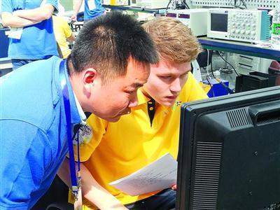 昨天“星光計(jì)劃”職業(yè)院校技能大賽上,首次迎來(lái)德國(guó)代表隊(duì),與中國(guó)學(xué)生同場(chǎng)競(jìng)技。彭德倩 攝