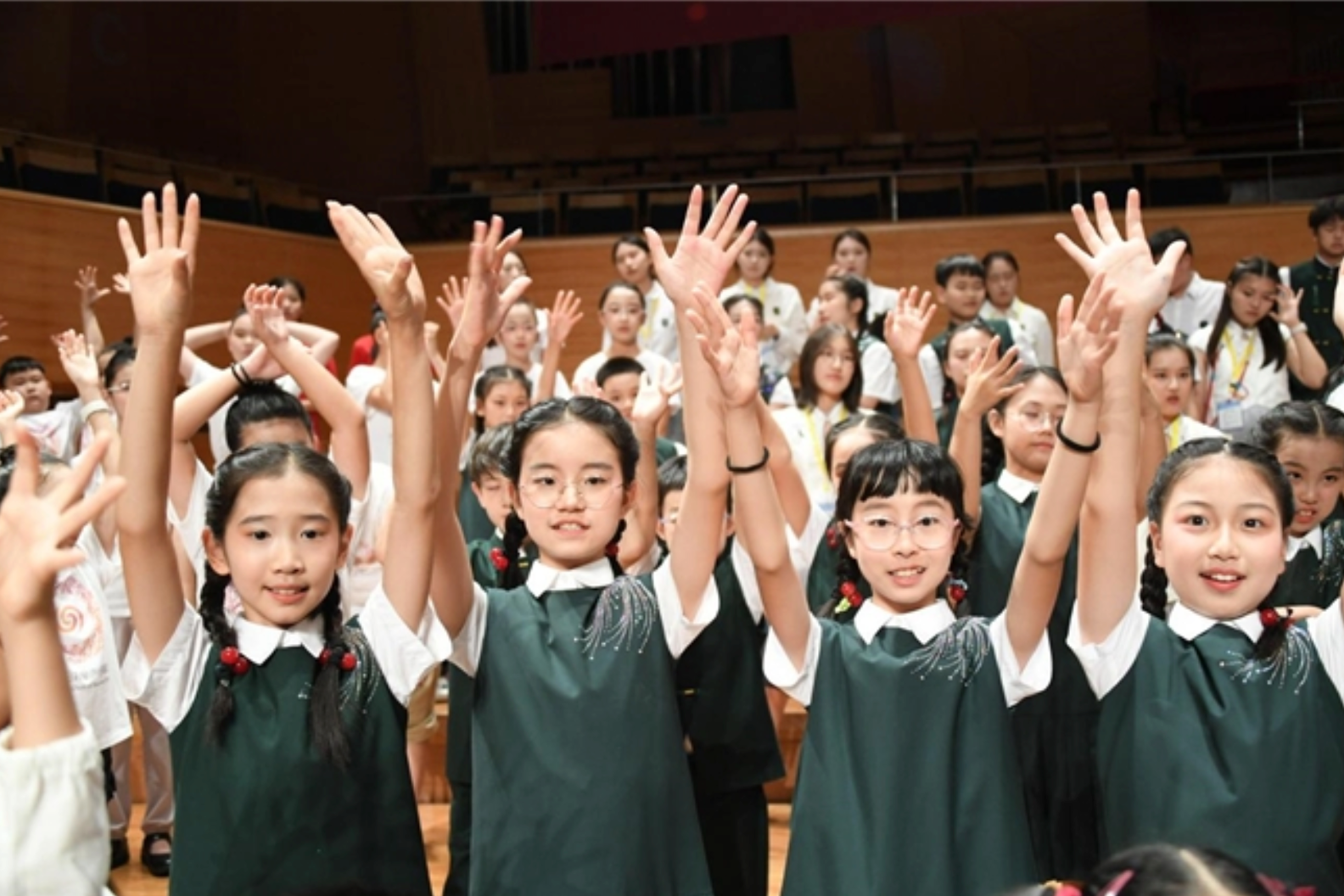 音樂會舞臺中央,剛從澳大利亞載譽歸來的合唱團國際班團員們,手持團扇、妝容清雅,一曲獲獎作品《舟中曉望》婉轉(zhuǎn)響起。就在不久前的第六屆悉尼國際文化節(jié)上,孩子們以《清平樂?村居》的宋詞意蘊、《ComeToTheMusic》的融合多聲部合唱技巧,一舉斬獲童聲組、混聲組兩項金獎——這是合唱團十歲生日收到的珍貴“禮物”。
