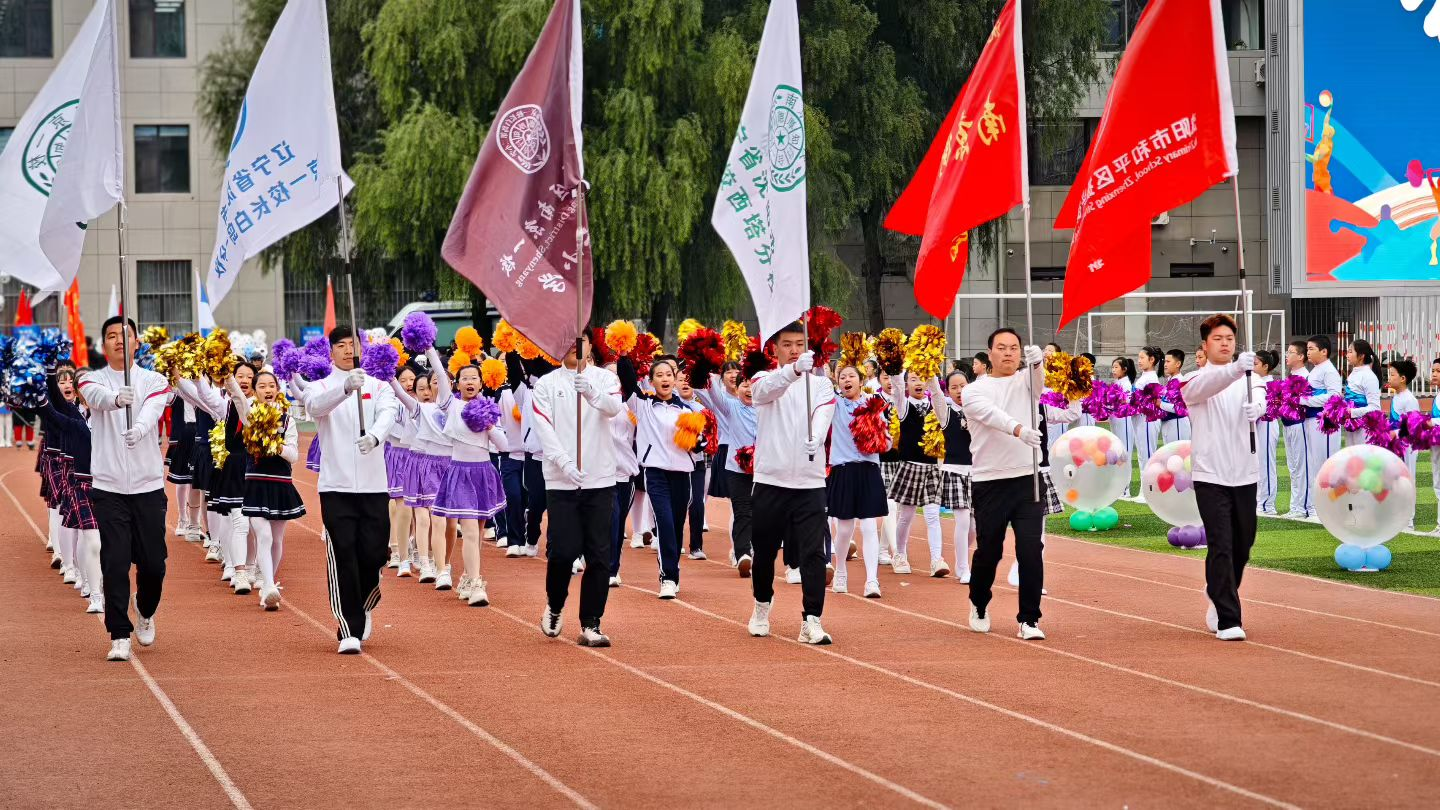 團體操表演結束后,雄壯的運動員進行曲奏響。國旗方隊昂首挺胸,守護著鮮紅的國旗;局旗方隊步伐堅定,彰顯教育擔當;裁判員方隊精神抖擻,秉持公正初心;各學校運動員方陣身著統(tǒng)一服裝,喊著嘹亮口號依次入場,每一步都透著蓬勃朝氣,每一聲都飽含奮進力量,充分展現了和平學子積極向上的精神風貌。隨后,全場起立,升國旗、唱國歌,在莊嚴的氛圍中,愛國情懷在每個人心中深深扎根。