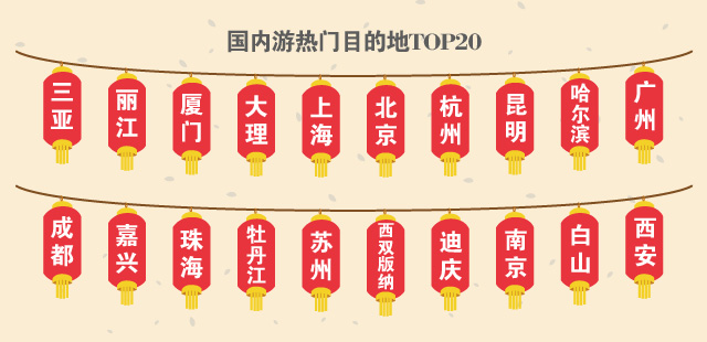 報(bào)告認(rèn)為,旅游作為春節(jié)最重要的消費(fèi)項(xiàng)目之一,在收入水平提升、交通基礎(chǔ)設(shè)施改善、互聯(lián)網(wǎng)與智能手機(jī)普及的推動(dòng)下,2017年春節(jié)旅游市場(chǎng)繼續(xù)呈現(xiàn)平穩(wěn)上升態(tài)勢(shì)?驮吹厍20名城市中,出游人次同比增長(zhǎng)最快的城市為佛山,增速達(dá)50%,二三線城市旅游需求旺盛;國(guó)內(nèi)游方面,三亞是當(dāng)之無(wú)愧的最熱目的地;出境游繼續(xù)保持高人氣,出游人次占比近半,達(dá)到48%,泰國(guó)最受追捧,游客最遠(yuǎn)前往南極過(guò)大年。
