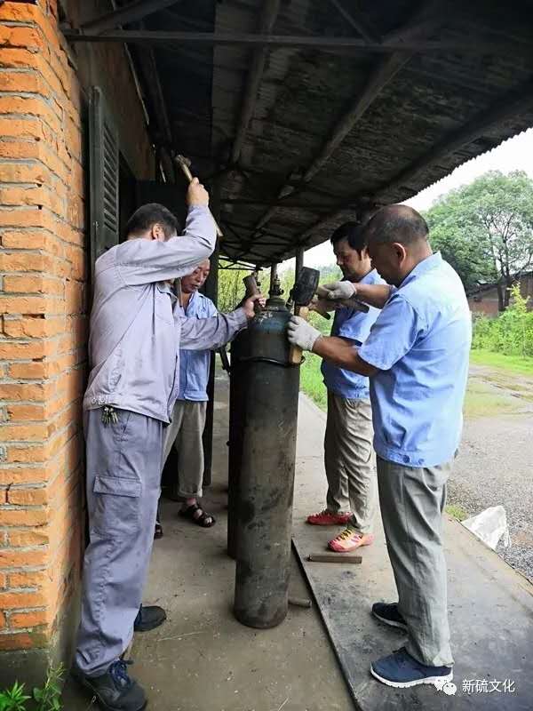 坐上皮卡車,我們一路顛簸來到一處偏遠(yuǎn)的庫房,氧氣乙炔儲存點。路上,李部長給大家做了簡單的說明,原來今天是要給氣瓶套上防震圈,簡稱“套圈”。防震圈不屬于氣瓶的附件,所以入庫的氣瓶都沒有佩戴防震圈。但按照國家危險品運(yùn)輸有關(guān)規(guī)定,在運(yùn)輸和裝卸氣瓶時,必須佩戴防震圈。為了防止氣瓶在運(yùn)輸過程中發(fā)生震動或碰撞危險,保證領(lǐng)用單位使用安全,倉儲部決定,自行購買防震圈并安裝。