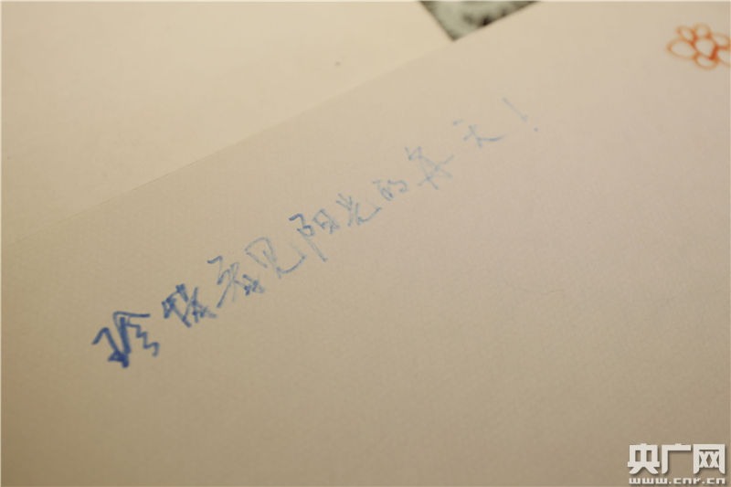 讓不少人印象深刻的,是一對(duì)母子留下的繪畫留言。剛上小學(xué)一年級(jí)的女兒說(shuō):“媽媽,好黑呀!”媽媽安慰她道:“寶貝,要堅(jiān)持!”旁白寫下一句“黑暗的盡頭是光明!”