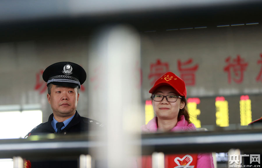 “來來來,大家都別忙了,快過來吃年飯!這些年過年都是你們嫂子做飯吃……”這是武漢鐵路公安局武漢公安處孝感北車站派出所副教導(dǎo)在食堂桌邊傳來的聲音。圖為:1月21日,簡清漢的女兒簡夢悅(右)在車站大廳當(dāng)志愿者,協(xié)助引導(dǎo)旅客驗證進站。 -