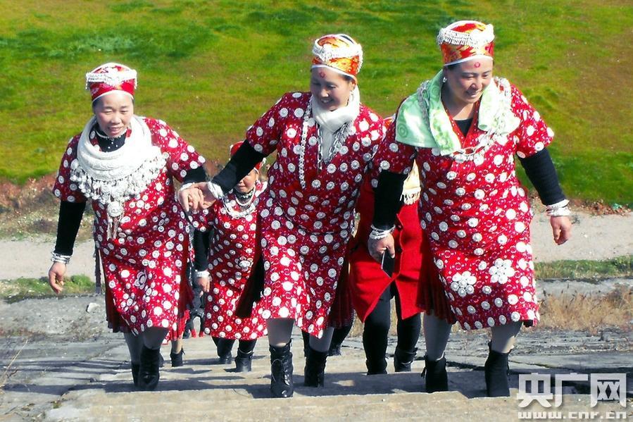 迎親的人群(央廣網(wǎng)發(fā) 姜澤鵬攝) 央廣網(wǎng)黔東南苗族侗族自治州2月22日消息(記者陳屹 通訊員姜澤鵬)冬去春來,貴州省黔東南苗族侗族自治州10多個縣的苗族村民傳統(tǒng)特色婚禮等民俗活動異常活躍,讓來自四面八方的游客充分感受到了苗鄉(xiāng)濃郁的傳統(tǒng)文化。當(dāng)下正是山區(qū)苗寨苗族青年男女游方戀愛的黃金季節(jié),苗鄉(xiāng)侗寨不是會迎來迎親娶親場面,成為一道極具民族文化風(fēng)情的風(fēng)景。圖為貴州省黃平縣舊州苗寨,身著節(jié)日盛裝的苗族男女在一起舉辦傳統(tǒng)“迎親”活動。 -