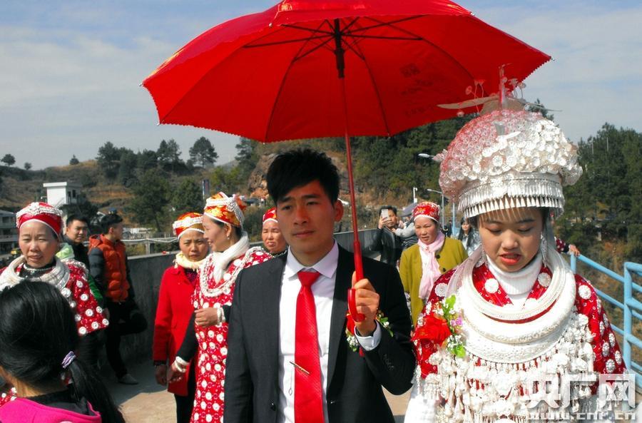苗族青年新人迎親回家途中(央廣網(wǎng)發(fā) 姜澤鵬攝)