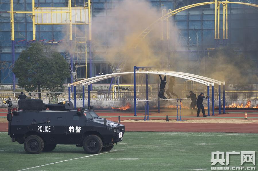 據(jù)了解,合肥市民除了現(xiàn)場參觀狙擊步槍、92手槍、霰彈槍等單警特戰(zhàn)外,黑豹突擊隊隊員為大家展示對模擬的暴恐分子營地進行打擊的戰(zhàn)術(shù)訓(xùn)練科目,讓市民大開眼界。