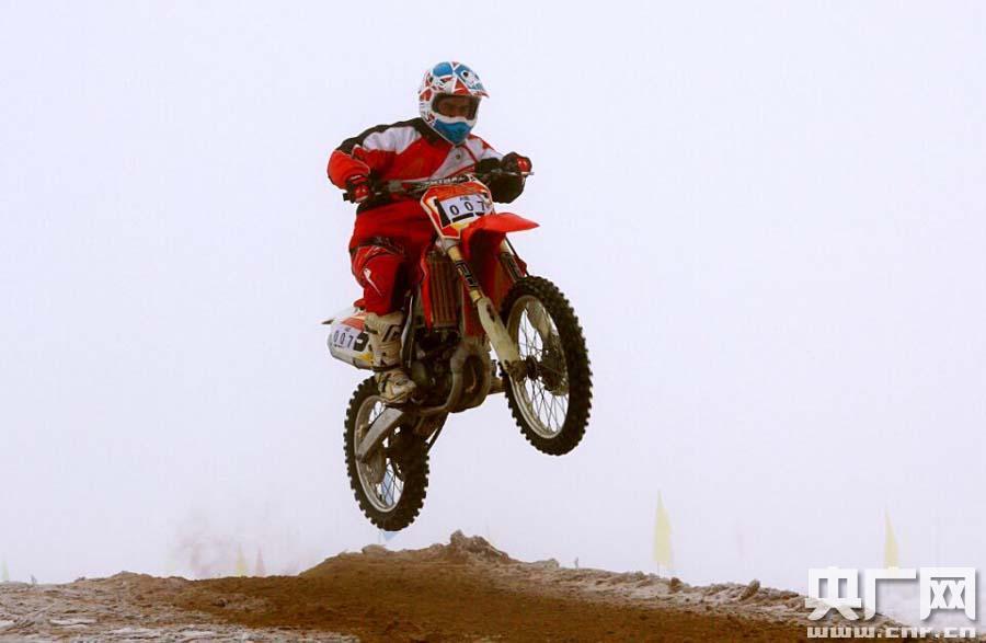 雪地越野現(xiàn)場狂野馳騁的摩托車