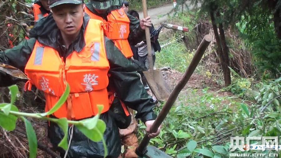 一路上,官兵背負沉重的救援器材向事發(fā)現(xiàn)場疾行,一路上躲避隨時可能崩塌的泥石,行進過程困難重重,雖然一路急行軍消耗了武警官兵很多的體力,但官兵們一刻也沒有停歇,成為第一支抵達事發(fā)現(xiàn)場的軍事救援力量。