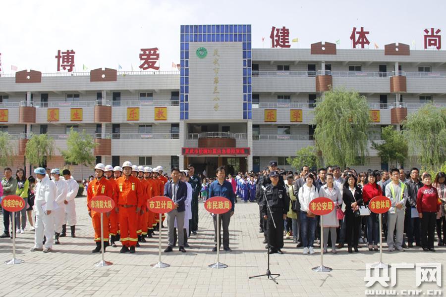 演練設(shè)定當日 9 時30分靈武市發(fā)生5.5級地震災(zāi)害,震源深度約10公里,震中位于三小區(qū)域。地震發(fā)生后,靈武市第三小學立即拉響防空警報,全體教師引導(dǎo)學生進行緊急避震措施,同時向市政府報告。市政府立即啟動突發(fā)性災(zāi)害事故應(yīng)急救援預(yù)案,命令市公安、消防、安監(jiān)、地震、醫(yī)療衛(wèi)生、民政等社會應(yīng)急救援聯(lián)動部門迅速火速趕赴地震災(zāi)害事故現(xiàn)場。