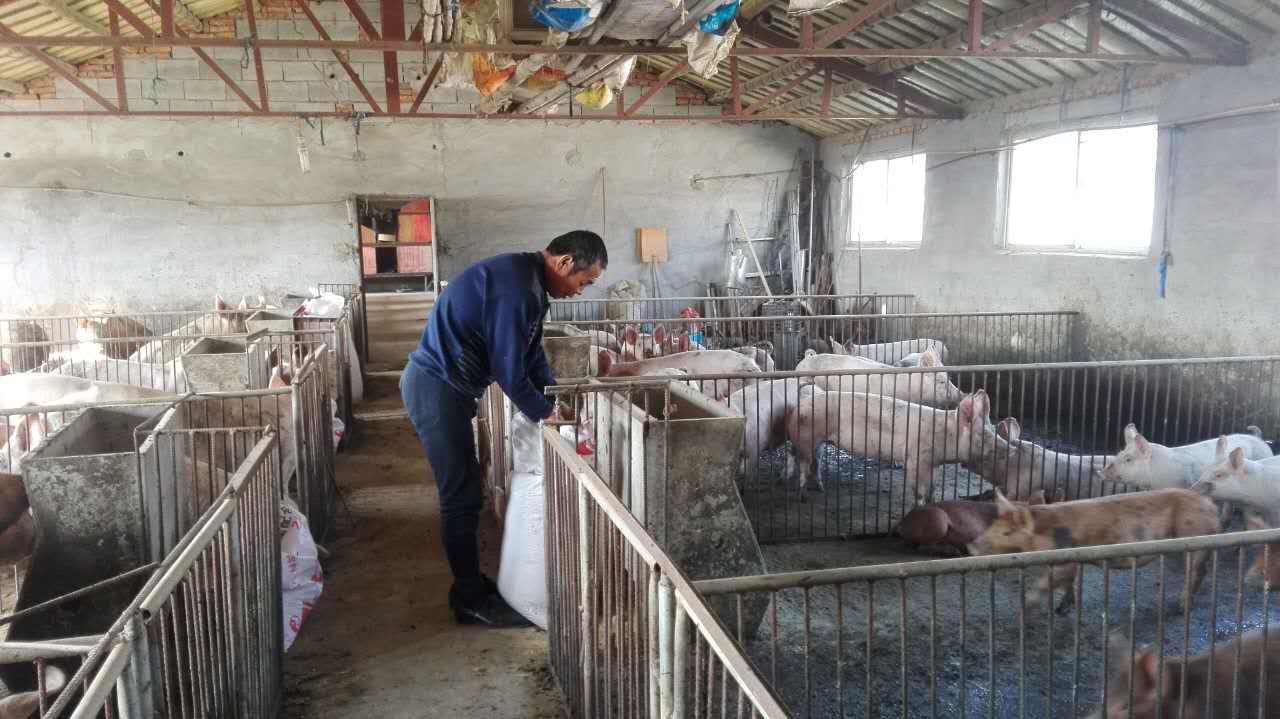 街道管區(qū)包村干部結(jié)合村里形成較大行業(yè)養(yǎng)豬規(guī)模優(yōu)勢,動員尹同友發(fā)展養(yǎng)豬業(yè)。他接受村干部建議,打起干勁兒開始養(yǎng)豬。為了兌現(xiàn)“一定把豬養(yǎng)好”的諾言,尹同友改變往日懶散的性情,很少跟村民出去喝酒,踏踏實(shí)實(shí)地當(dāng)起了“豬倌”。最初只養(yǎng)三兩頭,一年后感覺養(yǎng)豬有錢可賺,便擴(kuò)大養(yǎng)殖規(guī)模。2014年,在村委支持幫助下,建起占地1.5畝的養(yǎng)豬大棚,建成了真正的養(yǎng)豬場,育肥豬存欄量猛增到100頭以上。2015年,憑借著生豬市場供不應(yīng)求的大好形勢,尹同友的養(yǎng)豬場出欄肥豬累計(jì)140多頭,每頭純利潤1000元左右。目前,尹同友養(yǎng)豬場肥豬、母豬的存欄量仍有150頭。前期和親戚朋友借的十多萬借款也都還上了。短短幾年時(shí)間,尹同友從貧困戶變成了遠(yuǎn)近有名的富裕戶。